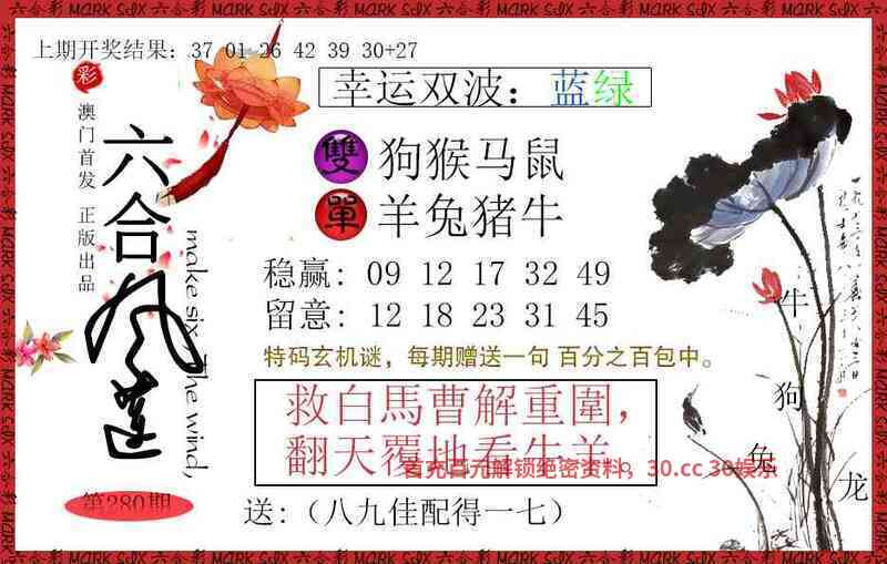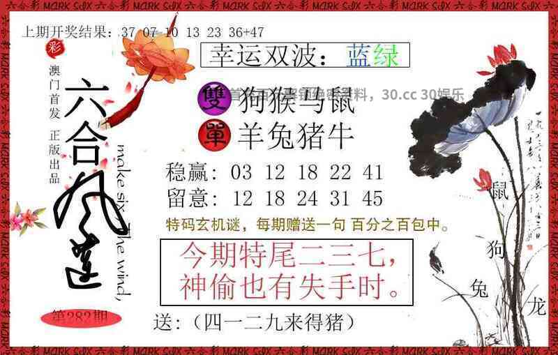 282期:绝杀一肖【鸡鸡】开:牛41中 |